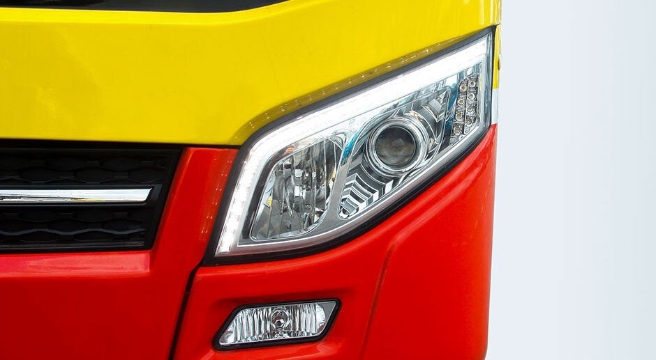 Nội thất xe nổi bật với phong cách tinh giản nhưng tiện nghi và sang trọng, trần và hông xe sử dụng tấm ốp bề mặt Aluminum, máng gió sử dụng hợp kim nhôm. Khoang hành khách chú trọng yếu tố không gian, kính hông được thiết kế liền nhau cho tầm quan sát rộng và thoáng. Sàn thấp mang đến cảm giác không gian nội thất rất rộng, thoáng đãng hiện đại Hệ thống tay nắm treo dành cho hành khách chắc chắn, màu sắc tươi tắn năng động, nổi bật dễ nhận biết.